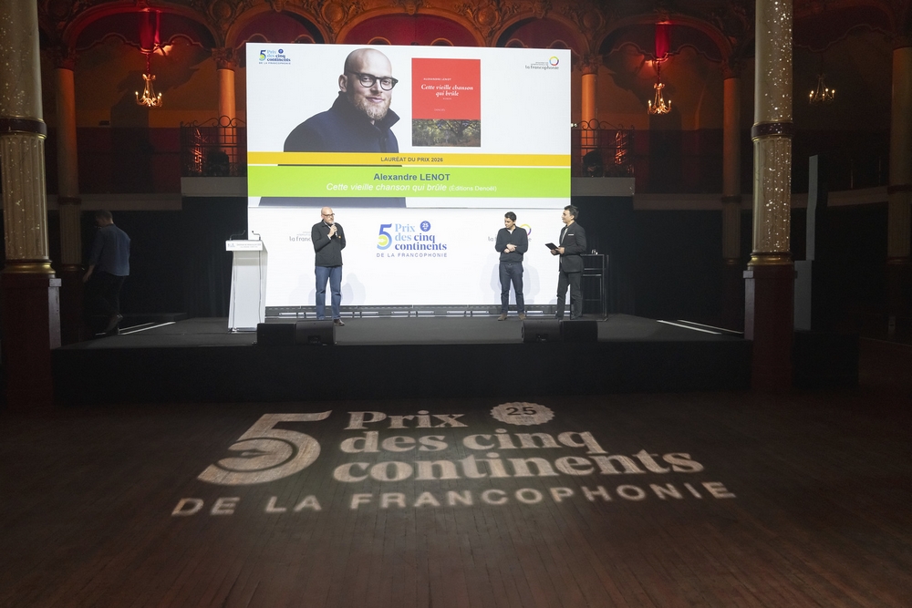Pour sa 25e édition, le Prix des cinq continents de la Francophonie a été attribué à Alexandre Lenot pour son roman Cette vieille chanson qui brûle (éditions Denoël).
